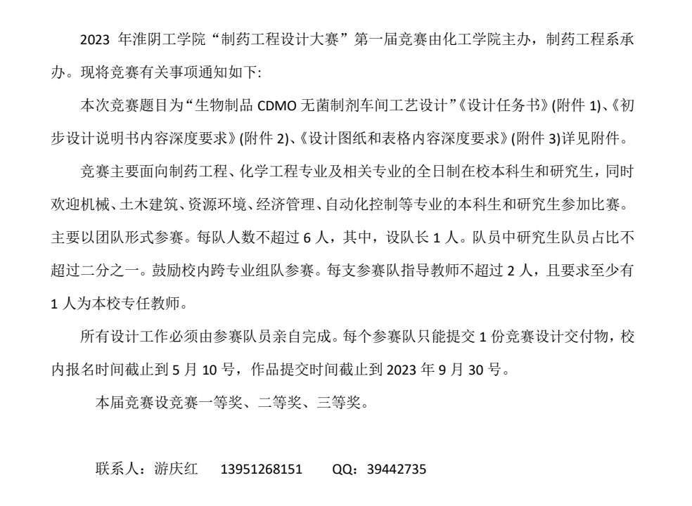 关于举办首届云顶国际yd222线路检测中心“制药工程设计大赛”竞赛通知